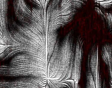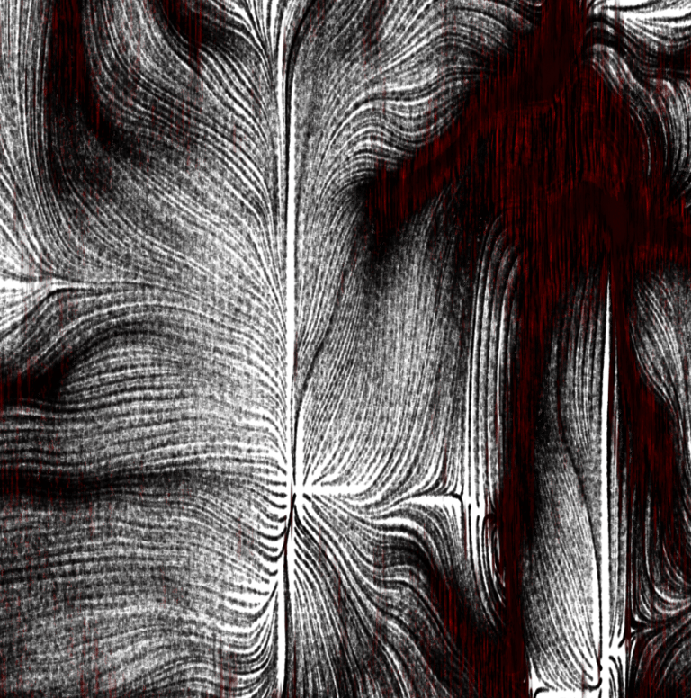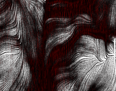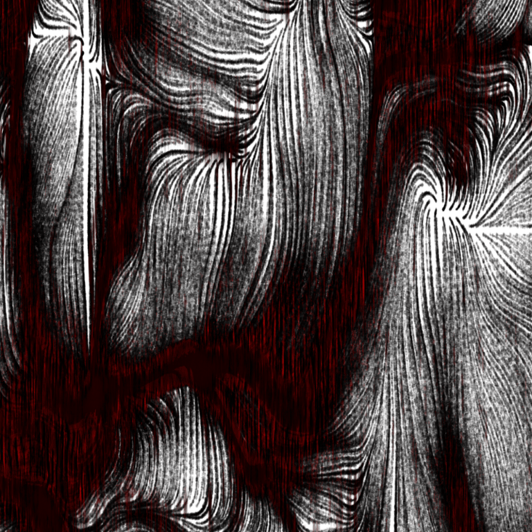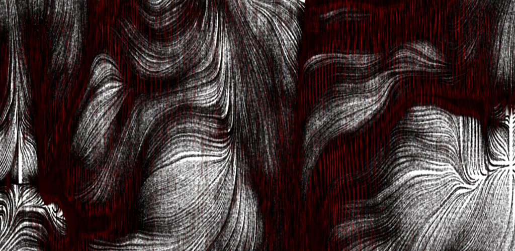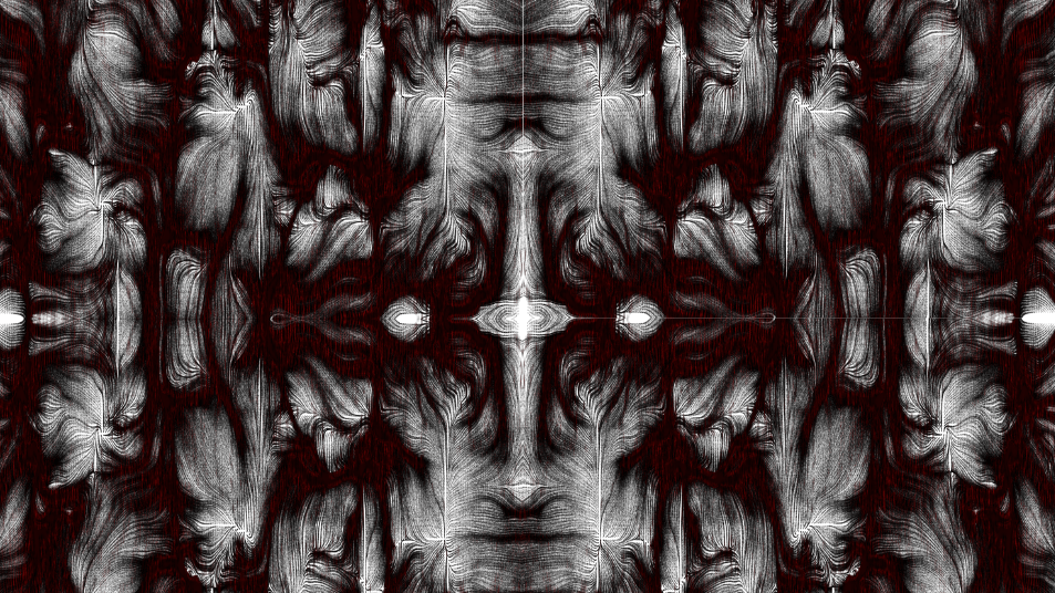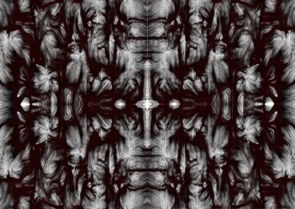 A partir d’une grille de point se développe un mouvement de déformation de la figure initiale suivant un mouvement symétrique, fluide et imperturbable jusqu’à la saturation totale de l’espace. De ce mouvement émerge une figure étrange qui masque sa nature algorithmique et échappe à toute assignation fixe et définitive.