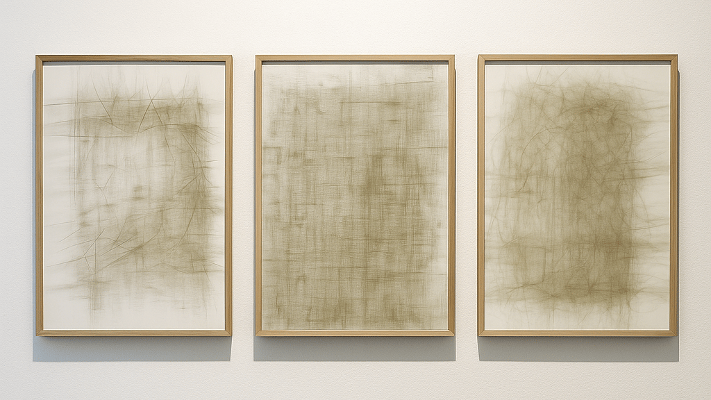 The rule is the same for all three works – square, triangle, circle – yet each one records a different story, a specific way of being altered by time.