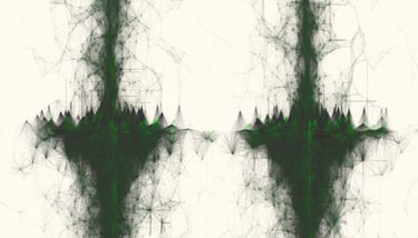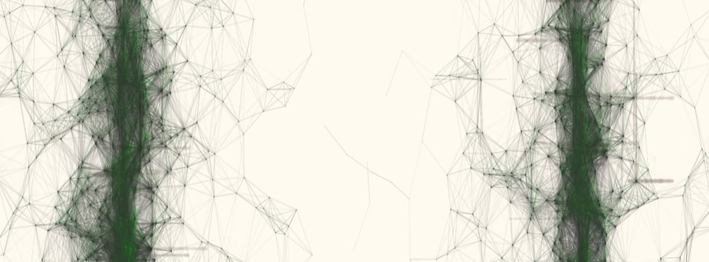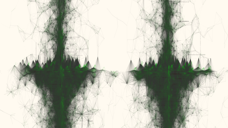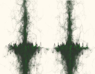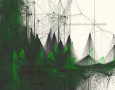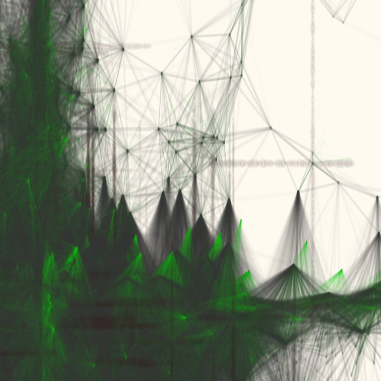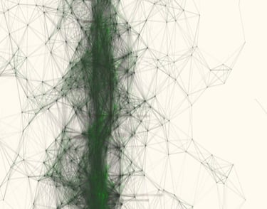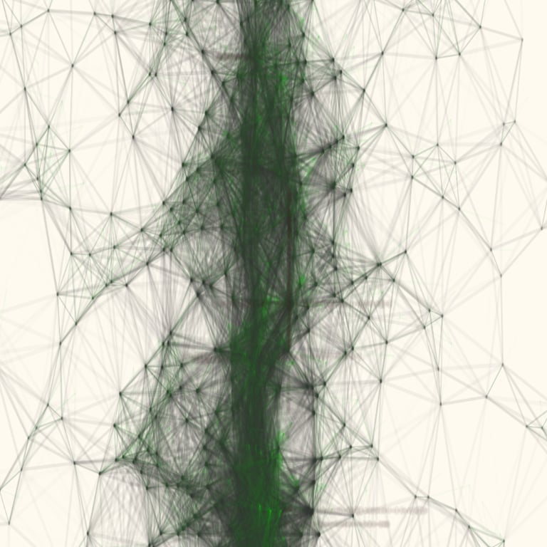 A vision constructed from the movements/paths between particles, echoing the networks, connections, links, and routes that shape our relationship with the world.
