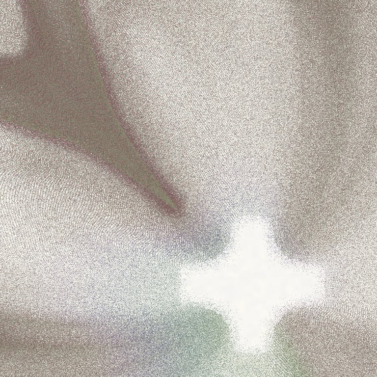 A partir d’une figure centrale, un mouvement excentrique des particules dessine une nouvelle forme « ouverte », insaisissable, mutante constituée d’une multitude de points. En résulte une image qui ne se cristallise jamais, évoluant dans un trajet visuel infini.